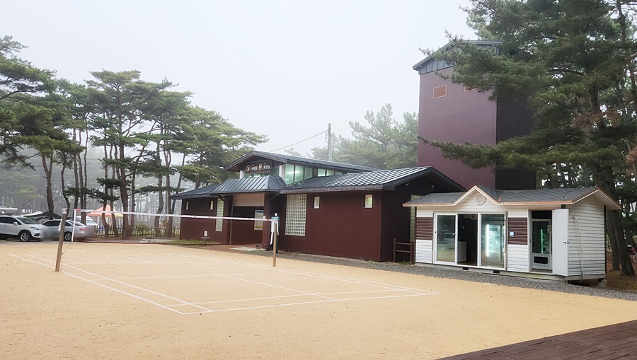 바다 캠핑장은 샤워장이 중요하지요. 샤워장은 건물에 있는 샤워장과 간이 샤워장이 있어요.